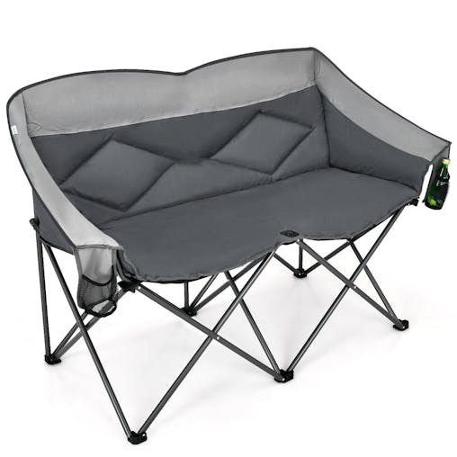 NNECW Outdoor Double Folding Camping Chair with Armrest and Carry Bag-Grey