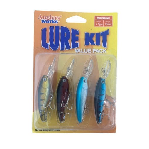 4 Pack of Anglers Works Assorted 70mm Hard Body Minnow Fishing Lures
