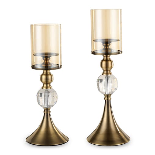 SOGA 2X 42cm 47cm Glass Candle Holder Candle Stand Glass/Metal