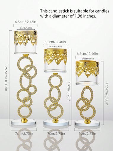 NNESN 1pc Elegant Crystal & Glass Candle Holder with Diamond Inlaid - Medium Gold