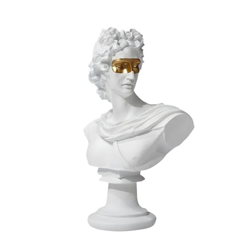 SOGA 40cm White Classical Bust Resin Sculpture with Gold Eye Mask for Modern Home Decor