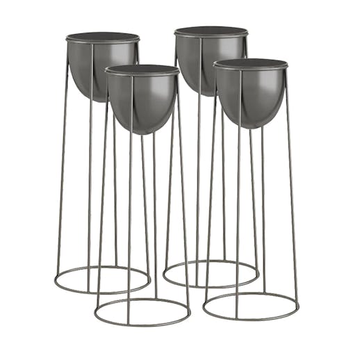 SOGA 4X 70cm Round Wire Metal Flower Pot Stand with Black Flowerpot Holder Rack Display