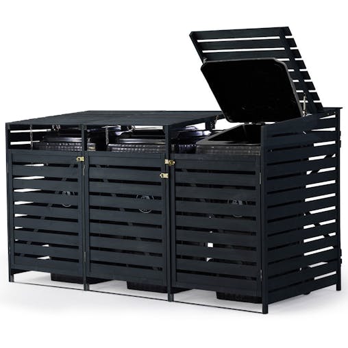 NNEMB Triple Wood Wheelie Bins Storage Shed, 3 Door Garbage Rubbish Bin Enclosure
