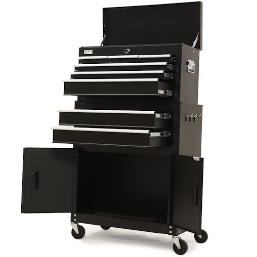 NNEMB 8 Drawer Tool Box Chest Cabinet Storage, with 2-Door Toolbox Garage Organiser Set, Black