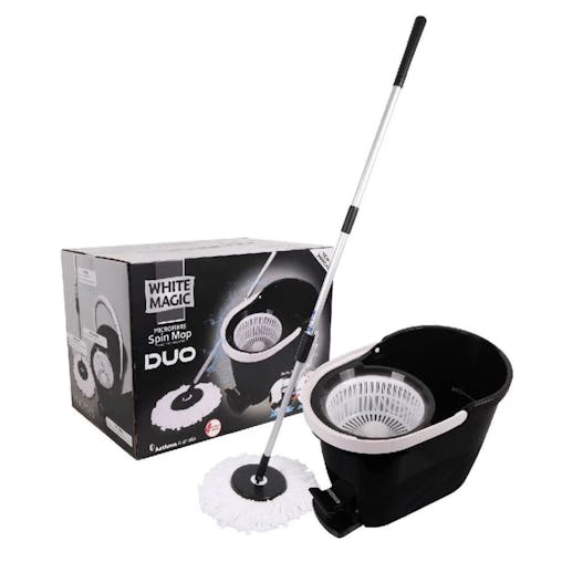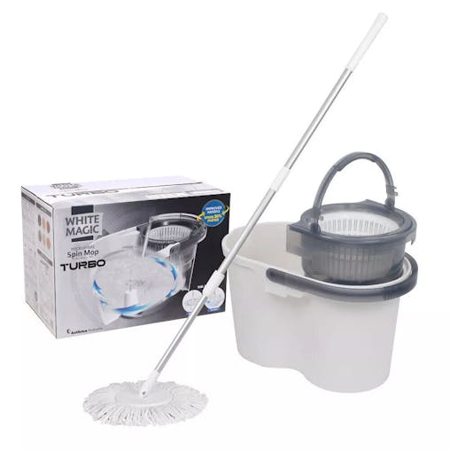 White Magic Turbo Microfibre Spin Mop Hand Press w/ Bucket