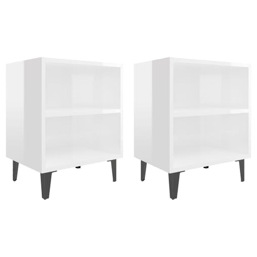 NNEVL Bed Cabinets with Metal Legs 2 pcs High Gloss White 40x30x50 cm