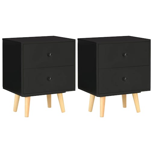 NNEVL Bedside Cabinets 2 pcs Black 40x30x50 cm Solid Pinewood