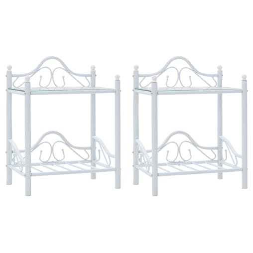 NNEVL Bedside Tables 2 pcs Steel and Tempered Glass 45x30.5x60 cm White