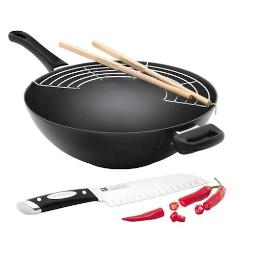Ken Hom 31cm Non-Stick Carbon Steel 4 Piece Wok Set