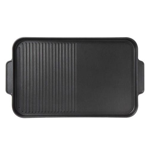 Oil-seasoned Ready to use 50.7x25.8cm Reversible Cast Iron Grill - Black