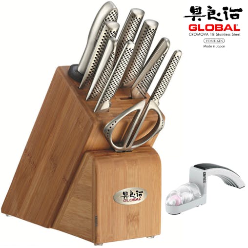 Global Takashi 10 Piece Knife Block Set Global 2 Stage Black Sharpener 10pc Knives