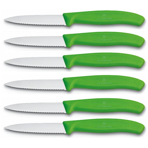 Victorinox Swiss Classic Paring 8cm Knife Pointed Blade Green Set of 6