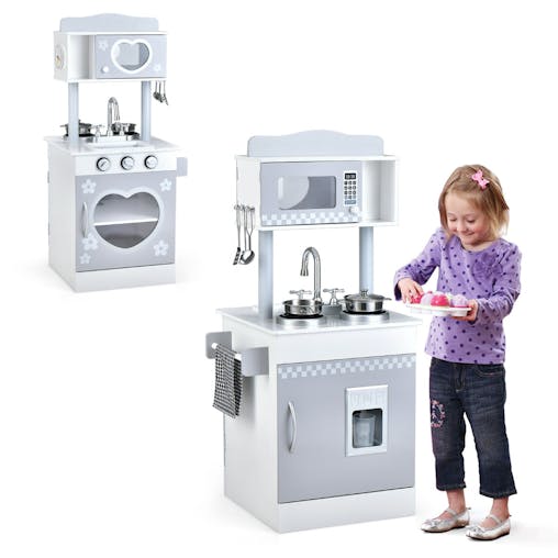NNECW Wooden Pretend Kitchen Playsetwith Accessories for Kids