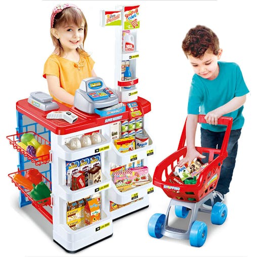 Children's Home Supermarket w/ Toy Cash Register, Trolly, Fruit & More