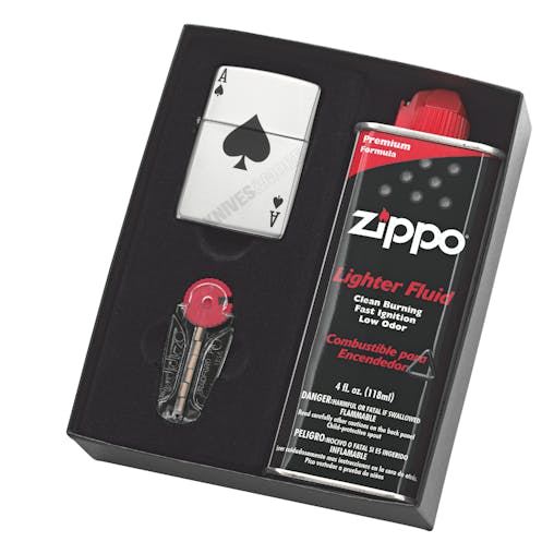 Zippo Lighter Lucky Ace Gift Set Bonus Fluid And Flints "Free Postage" 95411Gp