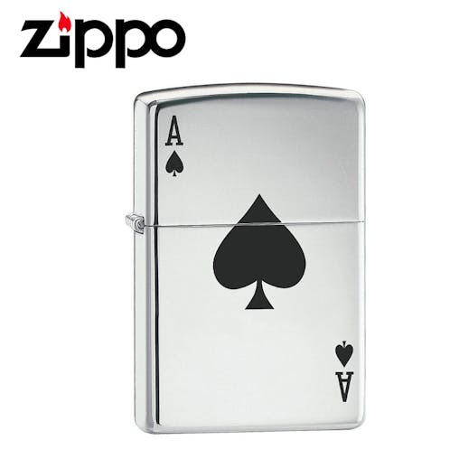 New Zippo High Polish Chrome Lucky Ace Spade Lighter