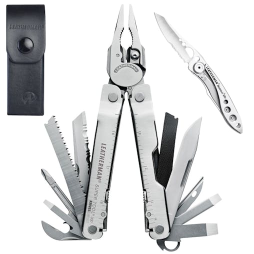 Leatherman Supertool 300 Stainless Multi-Tool & Leather Sheath & Skeletool Kbx