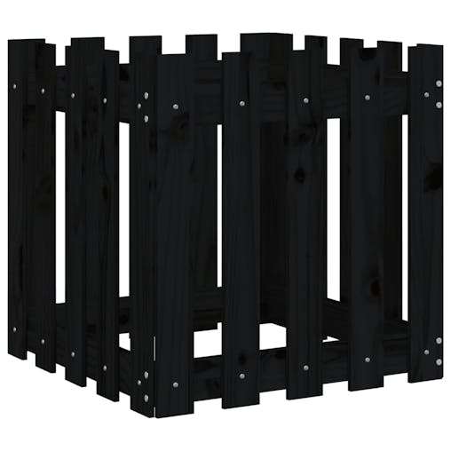 NNEVL Garden Planter with Fence Design Black 50x50x50 cm Solid Wood Pine