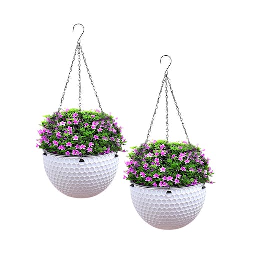 SOGA 2X White Small Hanging Resin Flower Pot Self Watering Basket Planter Outdoor Garden Decor
