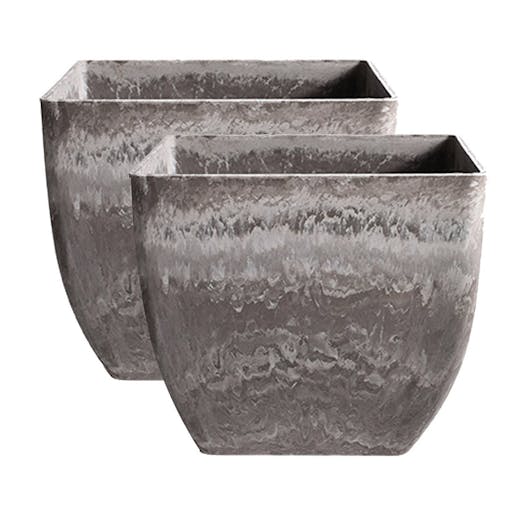 SOGA 2X 32cm Rock Grey Square Resin Plant Flower Pot in Cement Pattern Planter Cachepot for Indoor Home Office