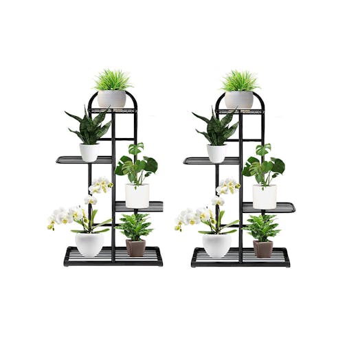 SOGA 2X 4 Tier 5 Pots Black Metal Plant Stand Flowerpot Display Shelf Rack Indoor Home Office Decor