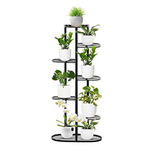 SOGA 7 Tier Black Metal Plant Rack for 8 Pots Home Garden