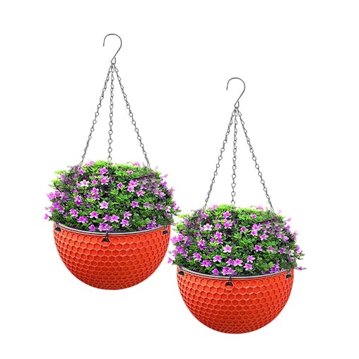 SOGA 2X Red Medium Hanging Resin Flower Pot Self Watering Basket PlanterOutdoor Garden Decor