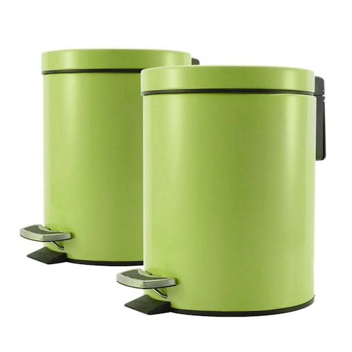 SOGA 2X Foot Pedal Stainless Steel Round Trash Bin Green 7L