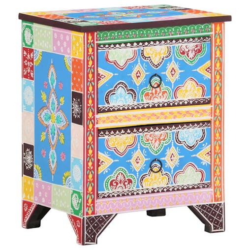 NNEVL Hand Painted Bedside Cabinet 40x30x50 cm Solid Mango Wood