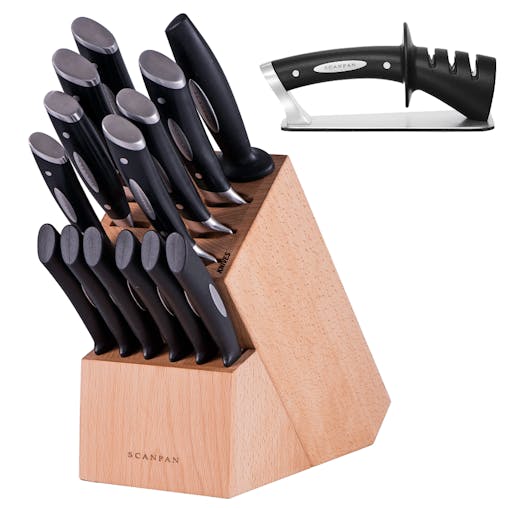 Scanpan Classic 15 Piece Oak 15Pc Knife Block Set Sharpener