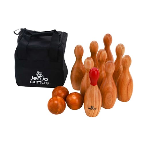 Outdoor Wooden Skittles Bowling Lawn Game Set with carry bag Jenjo Games