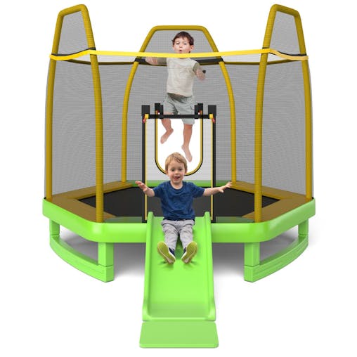 NNECW Mini Kids Trampoline with Enclosure Net for Family Games Green